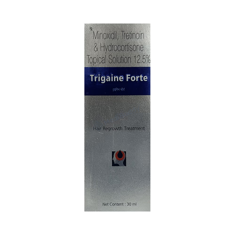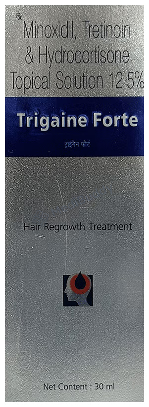 Further, Trigaine Forte Lotion 30 ml is a dermatological medicine specifically designed to treat male or female pattern baldness, also known as androgenetic alopecia. This condition involves permanent hair loss on the scalp, leading to baldness. The composition of Trigaine Forte Lotion 30 ml includes Hydrocortisone, Minoxidil, and Tretinoin. Hydrocortisone helps reduce scalp redness, itching, and swelling, while Minoxidil improves blood circulation to the hair follicles, promoting hair growth. Tretinoin, a form of vitamin A, further supports hair follicle growth.