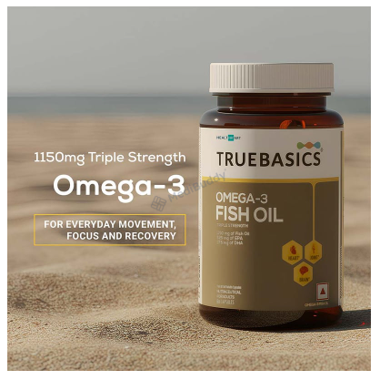 TrueBasics Omega 3 Triple Strength Fish Oil | for Brain, Heart & Joints | Soft Gelatin Capsule
