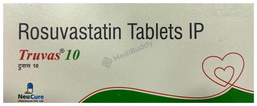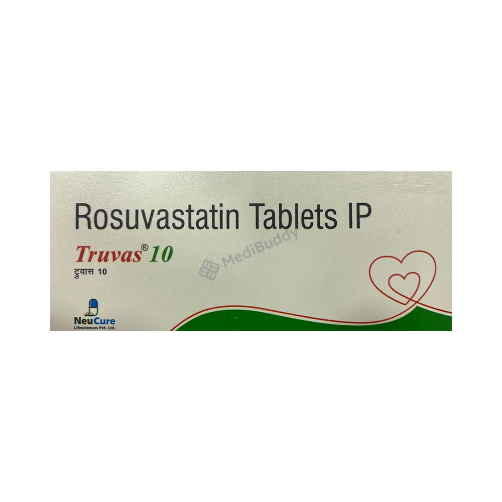 Truvas 10mg Tablet is a medication categorized as a statin, a type of drug commonly used to reduce cholesterol levels and lower the risk of heart disease. Cholesterol, a fatty substance that can accumulate in blood vessels, causing them to narrow and potentially leading to serious conditions like heart attacks or strokes, is targeted by this medication.