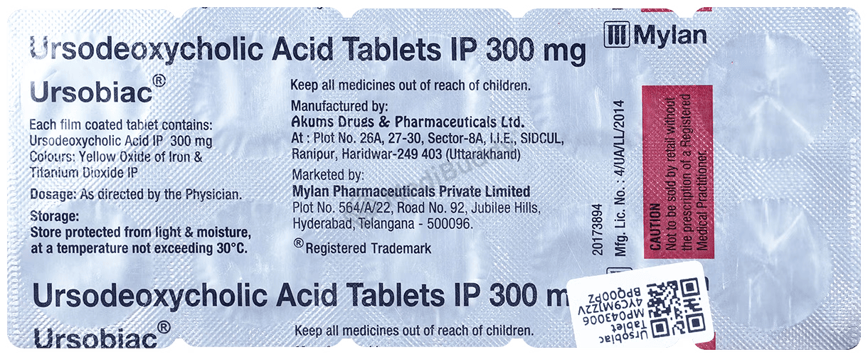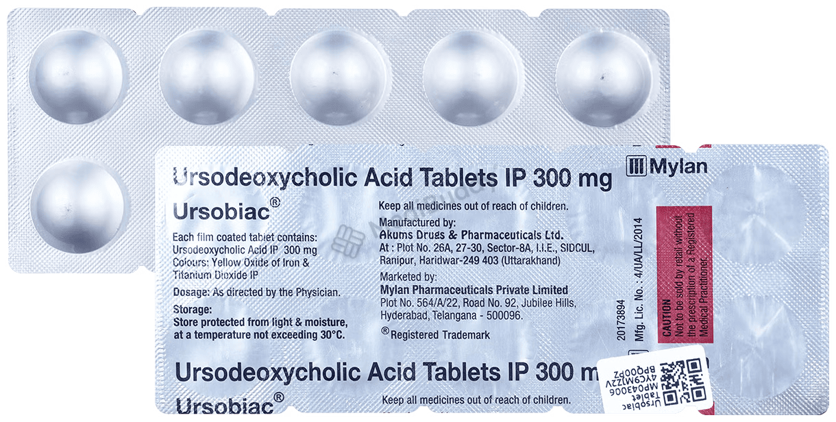 URSOBIAC 300MG TABLET, containing Ursodeoxycholic Acid, is categorized as a Hepatoprotective agent and is utilized to treat primary biliary cirrhosis and dissolve small gallstones. It is also prescribed to address liver disease in children with cystic fibrosis. Diagnostic tests such as liver function tests and gallbladder scans may be required during treatment.