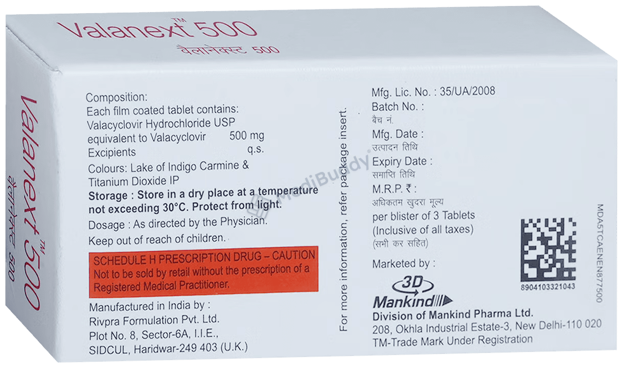 Valanext 500mg Tablet should be used carefully in patients with kidney disease. Adjustment of the dose may be necessary. Stay hydrated by drinking enough water to reduce the risk of kidney-related side effects while using this medication.