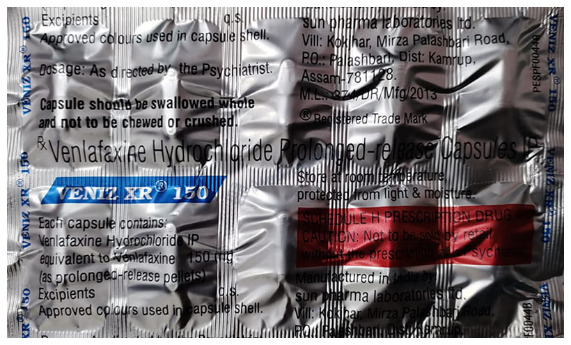Veniz XR 150 Capsule contains Venlafaxine, which belongs to the group of antidepressants known as serotonin and noradrenaline reuptake inhibitors (SNRIs). These medications are believed to function by elevating the levels of mood-boosting chemicals like serotonin and noradrenaline in the brain, contributing to the relief of symptoms associated with depression and anxiety disorders.