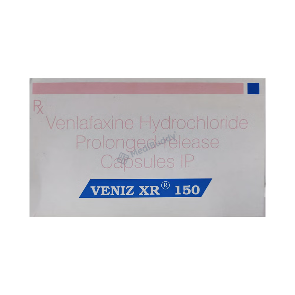 Veniz XR 150 Capsule belongs to the antidepressant group and is primarily used for Major Depressive Disorder, Generalized Anxiety Disorder, Social Anxiety Disorder, and Panic Disorder. It contains Venlafaxine, which falls into the category of serotonin and noradrenaline reuptake inhibitors (SNRIs). These medications work by increasing mood-enhancing chemicals in the brain. Side effects such as nausea, sweating, headaches, dizziness, and constipation may occur but typically resolve over time.