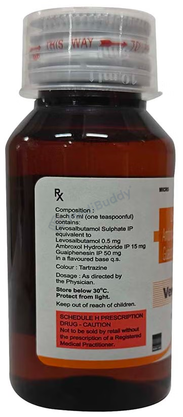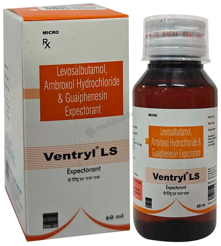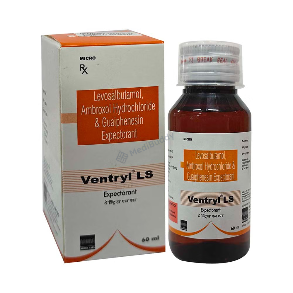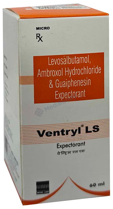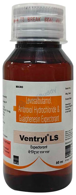 Ventryl LS Expectorant 100 ml is classified as an expectorant used primarily to treat cough associated with mucus. Coughing is the body's natural mechanism to clear irritants from the airways and prevent infections. There are two types of coughs, dry and chesty coughs. Ventryl LS Expectorant 100 ml contains Levosalbutamol, Ambroxol, and Guaifenesin, which work together to provide relief from cough symptoms. Levosalbutamol helps relax muscles and widen the airways, Ambroxol thins and loosens phlegm in the respiratory tract, while Guaifenesin increases fluid volume in the airways to facilitate mucus removal.
