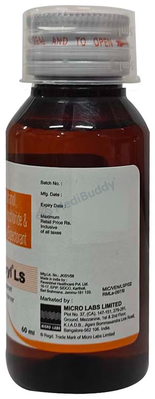 Ventryl LS Syrup offers relief in cases of cough with mucus. Its special formula helps in loosening thick mucus, which then becomes easier to expel through coughing. Apart from addressing the mucus issue, this syrup also works to relax the muscles of the airways, expanding them to facilitate better breathing. As a result, the frequency of coughing episodes reduces, offering much-needed respite. Not only that, Ventryl LS Syrup is designed to alleviate allergy symptoms such as watery eyes, sneezing, runny nose, and throat irritation, providing comprehensive relief for those dealing with seasonal allergies. To enhance the effectiveness of this medication, it is recommended to supplement the treatment with adequate consumption of lukewarm water and gargling with warm salt water. By incorporating Ventryl LS Syrup into your treatment regimen, you can experience improved respiratory health and find relief from troublesome coughs and associated allergy symptoms.