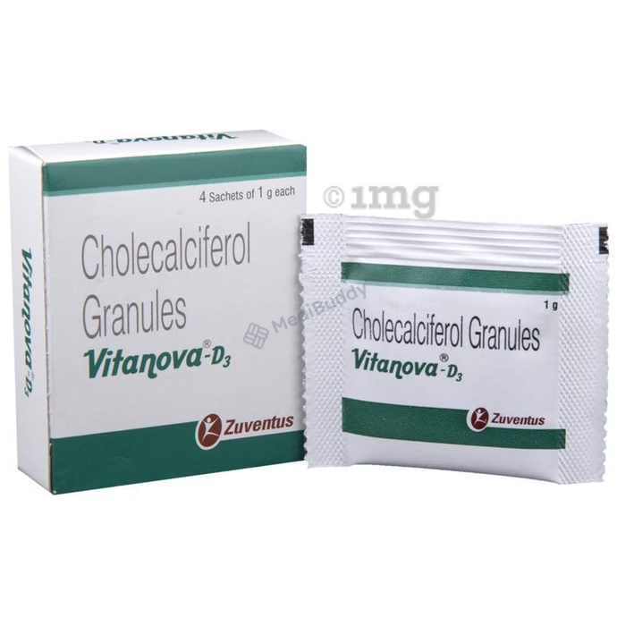In summary, Vitanova-D3 Sachet is a beneficial supplement for managing and preventing Vitamin D3 deficiency. Its formulation helps maintain optimal Vitamin D3 levels, supports bone health, immune function, and muscle strength. Adhering to the recommended dosage and precautions ensures the safe and effective use of this product.