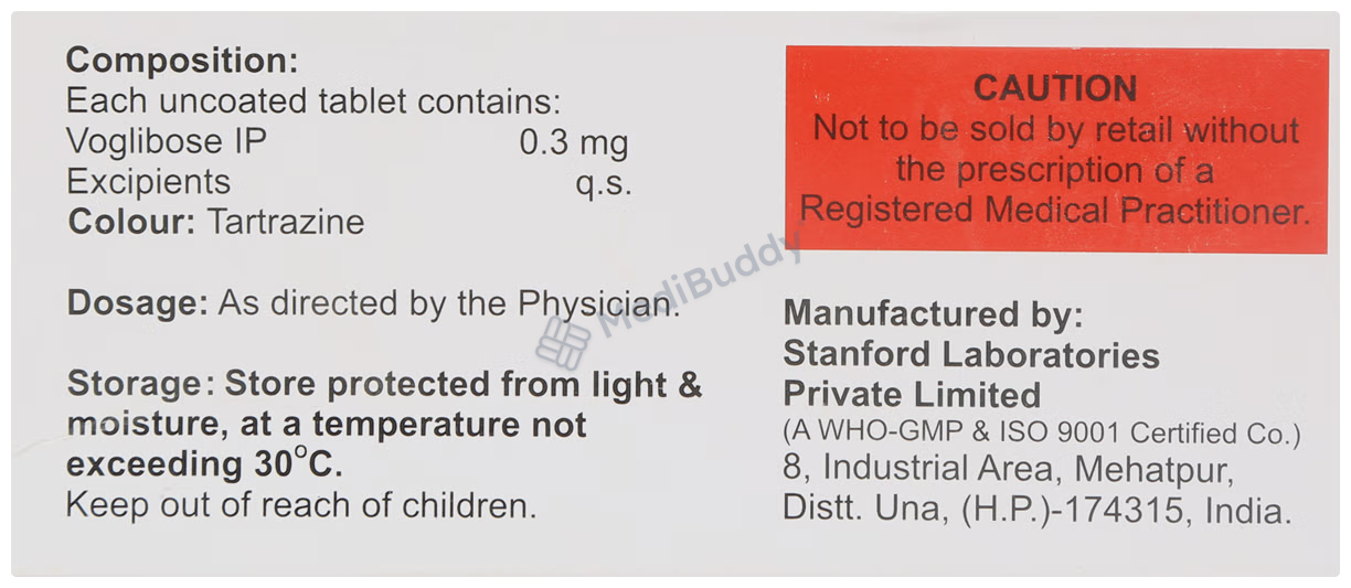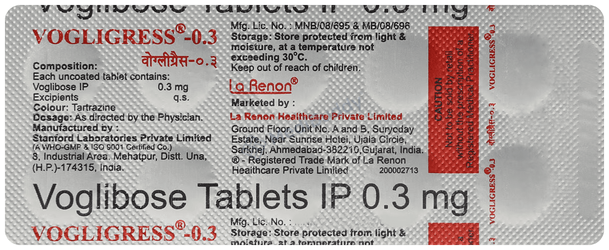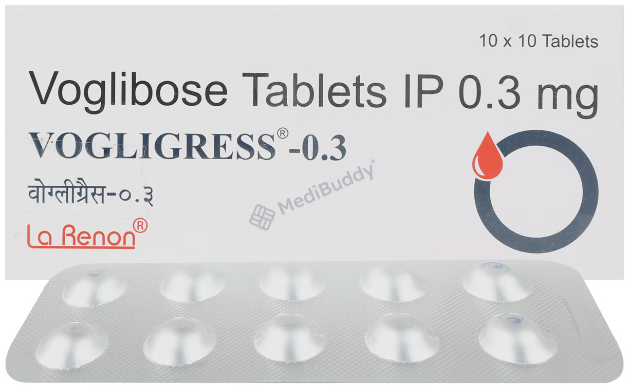 Remember, Vogligress 0.3mg Tablet is just one part of your treatment plan. Along with taking this medicine, you should also follow a healthy diet, engage in regular exercise, and follow weight reduction advice from your doctor. Be sure to monitor your blood sugar levels regularly while using this medication.