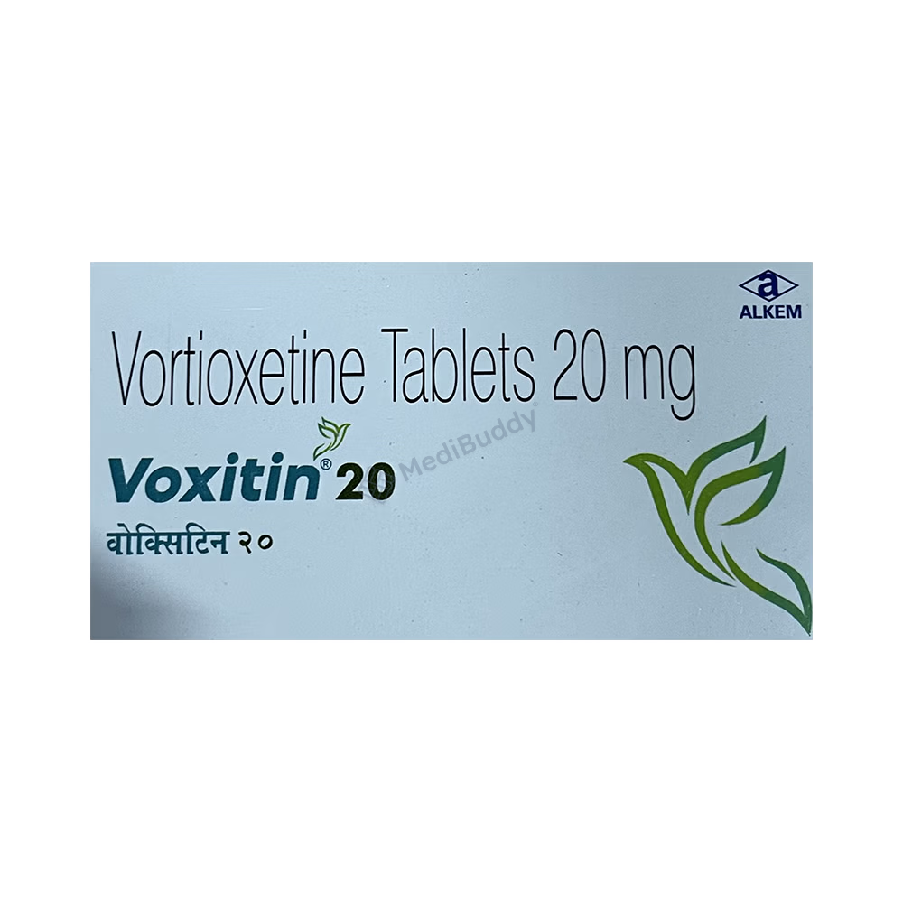 Voxitin 20 Tablet is a medication used to treat depression in adults. It falls under a category of antidepressants known as serotonin modulator and stimulator (SMS). This medication helps to enhance mood, elevate energy levels, and alleviate feelings of sadness and worthlessness commonly experienced in individuals with depression.