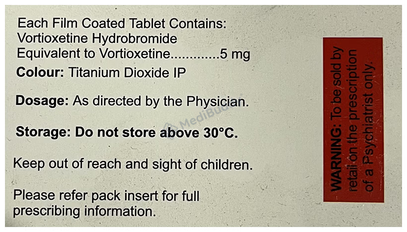 Voxitin 5 Tablet is not recommended for use in pregnant or breastfeeding women unless deemed necessary by a physician. It is also not suitable for children and adolescents under 18 years due to a lack of information on its use in this age group. If you have any concerns or experience a worsening of depression or suicidal thoughts while taking Voxitin 5 Tablet, be sure to inform your doctor promptly for further guidance and support.