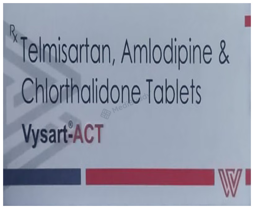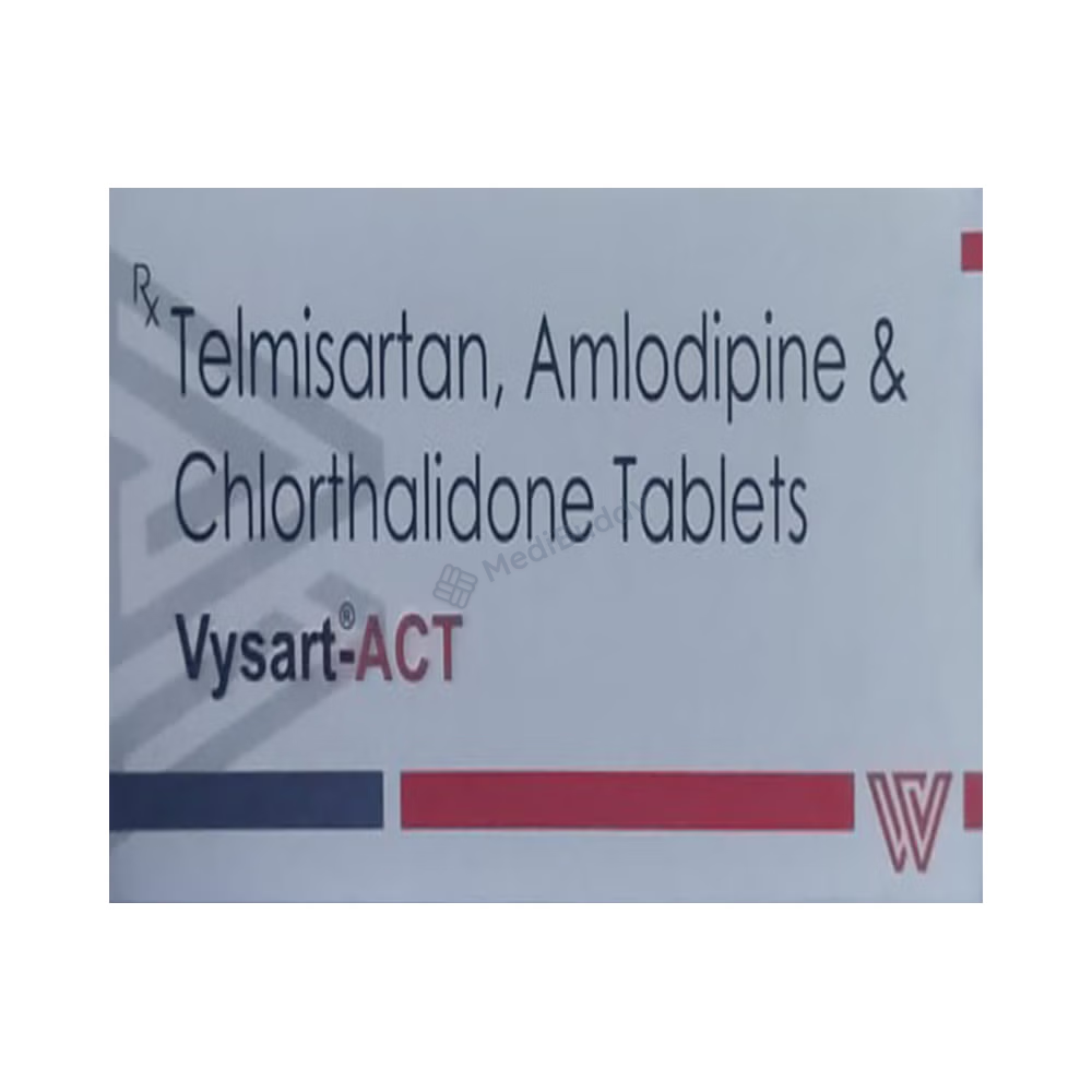 Vysart-ACT Tablet is a medication that combines different medicines to effectively treat hypertension, which is high blood pressure, particularly when a single medication is not sufficient. By helping to lower high blood pressure, this medication plays a crucial role in reducing the risk of future heart attacks and strokes. It is important to take Vysart-ACT Tablet with food, and the dosage will be based on your specific condition and how you respond to the medicine. It is recommended to take it at the same time each day for optimal effects.