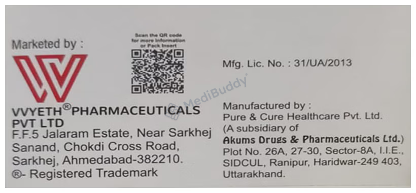 Manufacturer - Vvyeth Pharmaceuticals Pvt Ltd