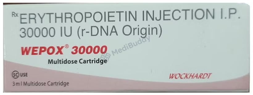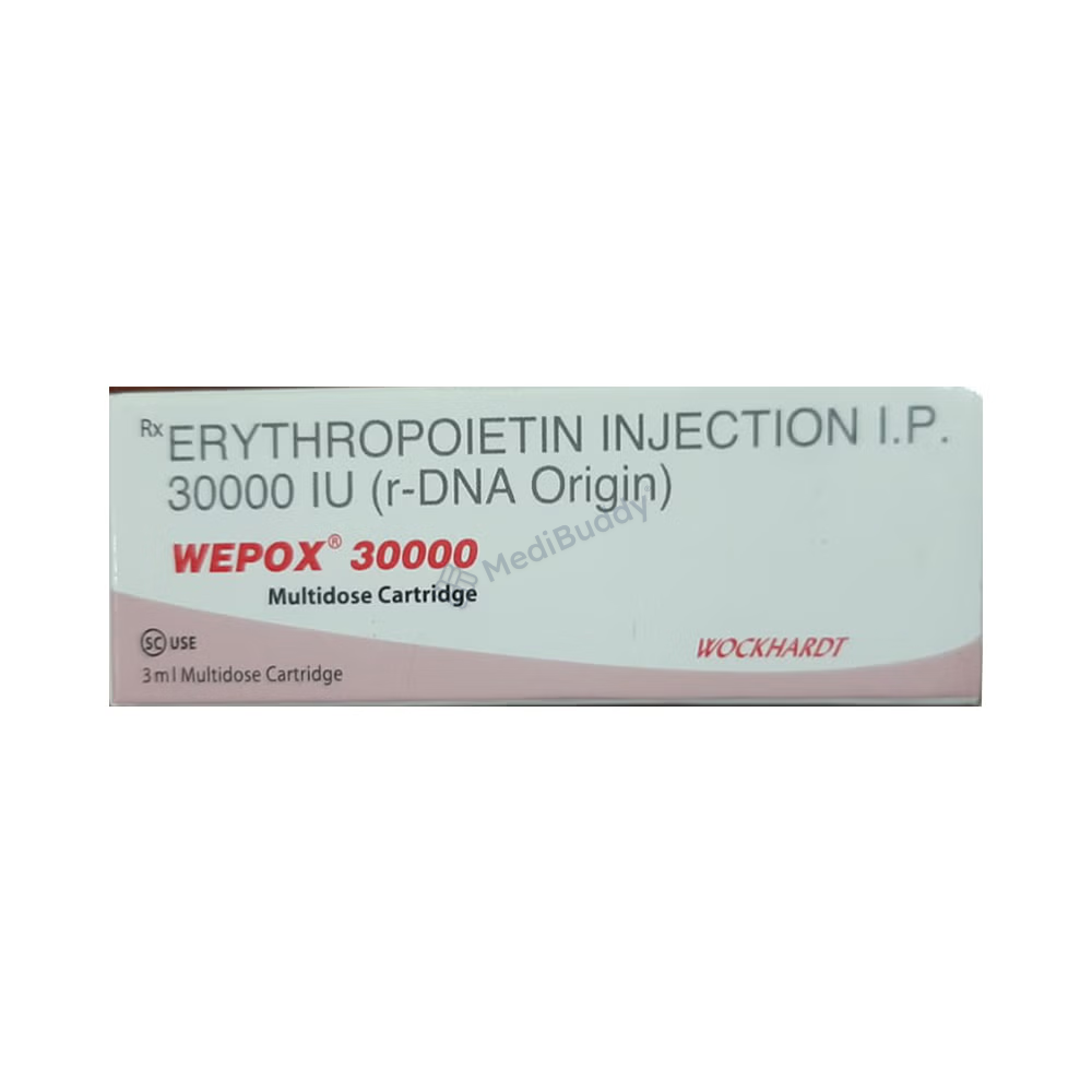 Wepox Injection is a medication aimed at boosting the production of red blood cells in the bone marrow. It is primarily used to address a specific type of anemia linked to kidney disease. Additionally, Wepox Injection is employed in the treatment of anemia related to cancer chemotherapy and certain medications used for managing HIV. Administration of Wepox Injection is typically done through injections under the skin or into a vein, a process determined by a healthcare provider. The dosage is customized based on body weight and the underlying cause of anemia. To enhance the effectiveness of the treatment, iron supplements before and during therapy may be recommended. It is worth noting that Wepox Injection should be stored in a refrigerator but utilized at room temperature.