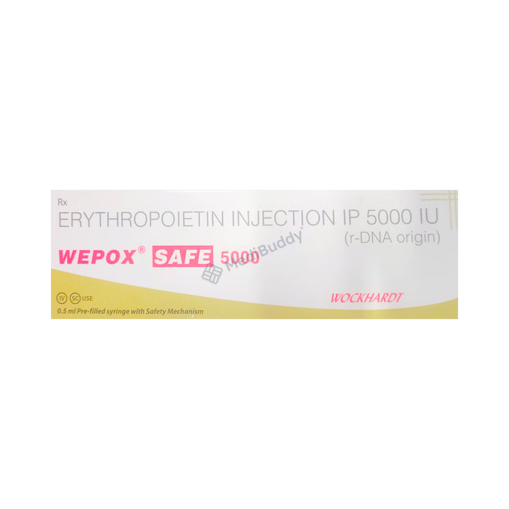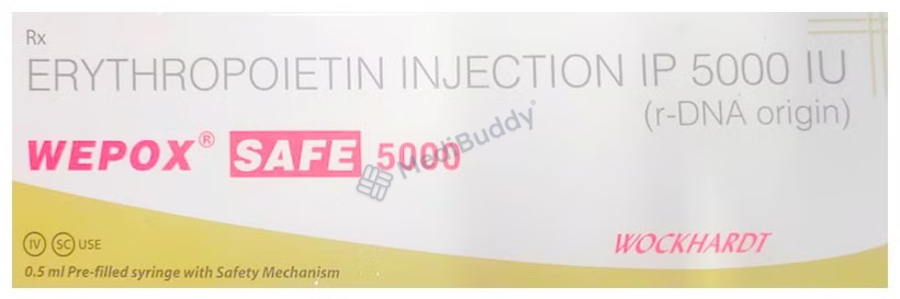 Wepox Safe 5000IU Injection is a medication that works by stimulating the bone marrow to produce more red blood cells. This drug is primarily used to treat a specific type of anemia that is caused by kidney disease. Additionally, it is also effective in treating anemia that arises due to cancer chemotherapy or as a side effect of HIV medications.