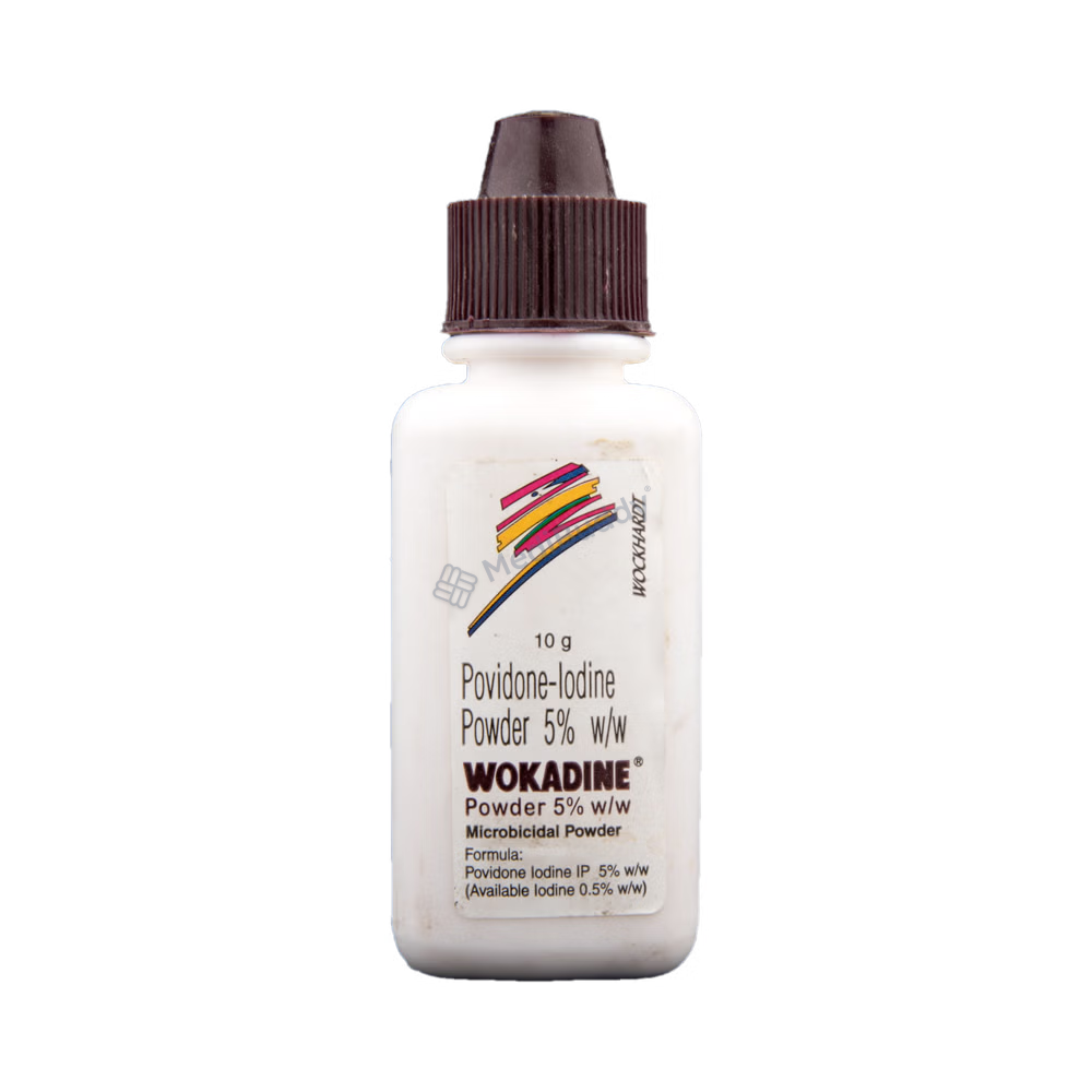 Wokadine 5% Dusting Powder is a powerful antiseptic and disinfectant that is used to treat and prevent infections in wounds and cuts. It works by eliminating harmful microbes and controlling their growth, thus preventing infections in the affected area. This dusting powder should only be used externally, exactly as instructed by your doctor. Before application, ensure that the affected area is clean and dry, and remember to wash your hands thoroughly before and after using the product.