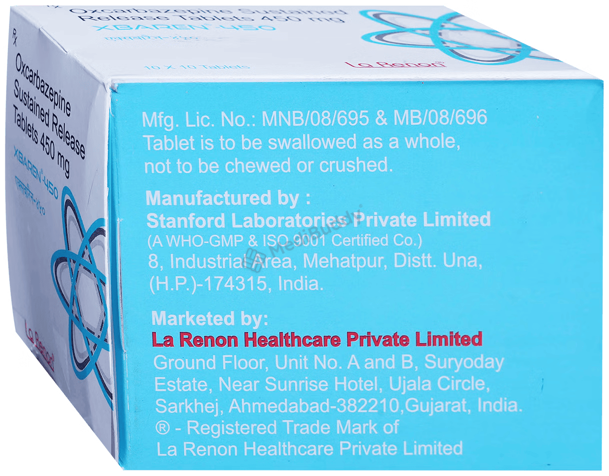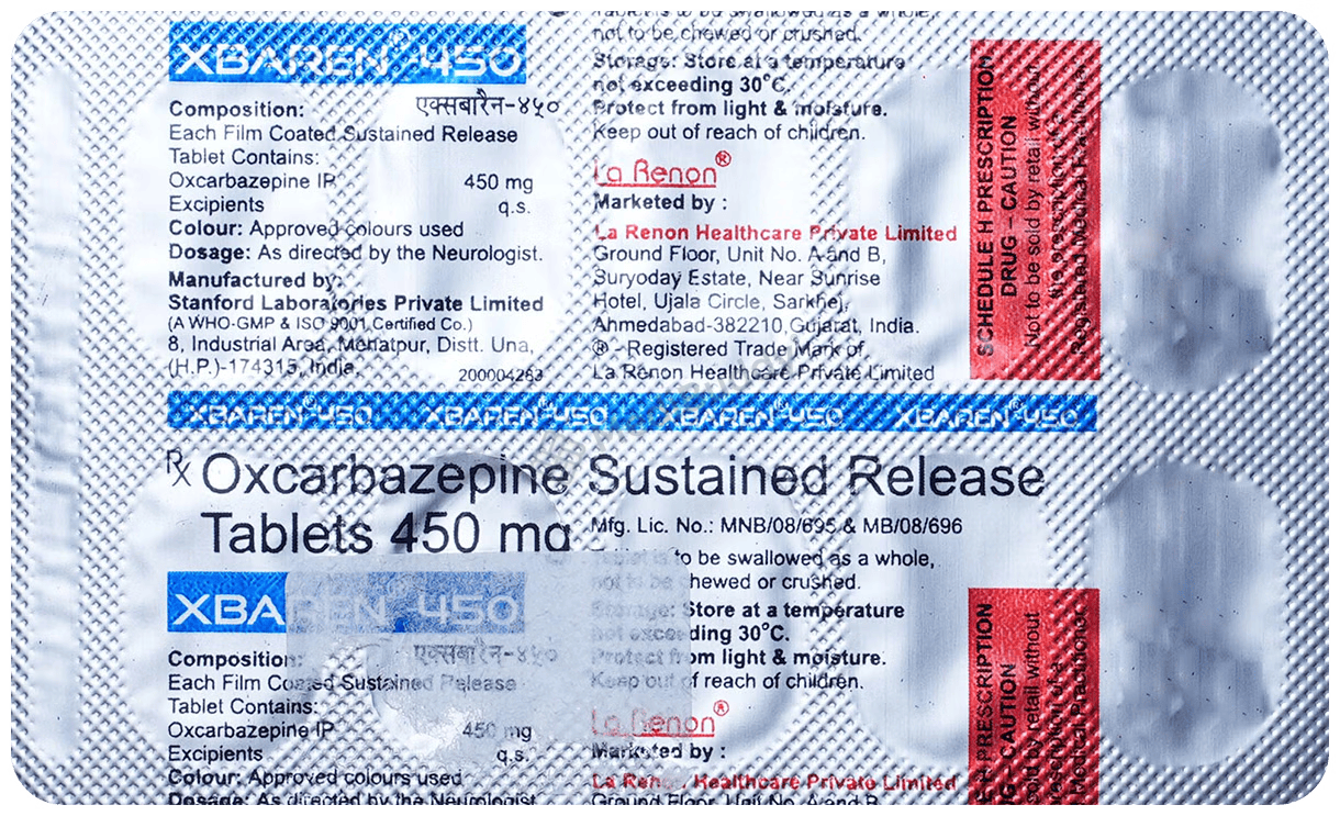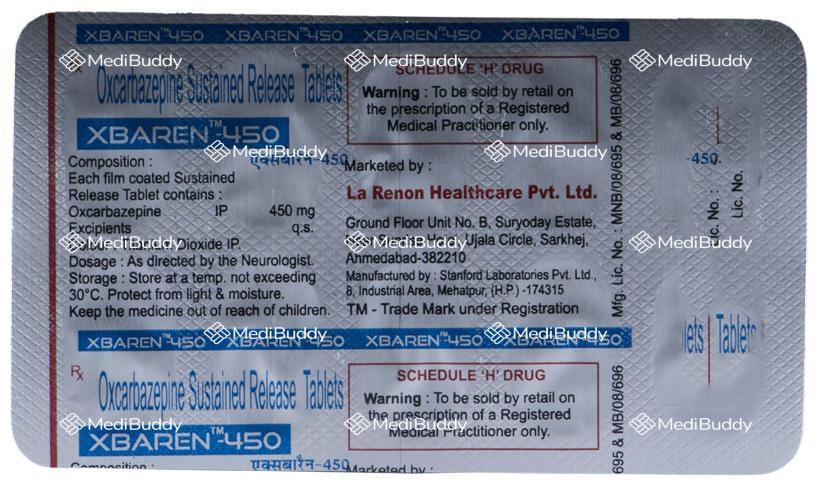 If you are pregnant or planning to conceive, do not begin or discontinue the use of Xbaren 450 Tablet SR without consulting your doctor, as it may pose risks to the unborn baby. Avoid alcohol consumption while on this medication, as it can exacerbate side effects and increase the risk of seizures. Regular blood tests may be necessary to ensure you are on the appropriate dose and monitor any potential side effects.