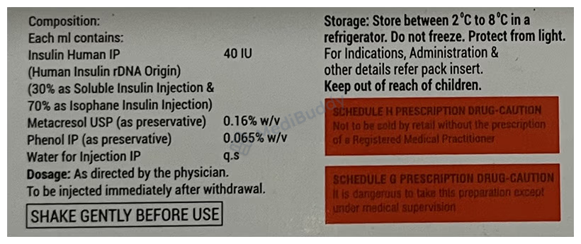Xsulin 30/70 Suspension for Injection is a type of short-acting insulin that is used to manage both type 1 and type 2 diabetes mellitus. This medication is essential in controlling blood sugar levels after meals, which is crucial in preventing severe complications such as kidney damage and blindness. Typically, Xsulin 30/70 Suspension is prescribed alongside a long-acting insulin or other diabetes medications to effectively manage diabetes.