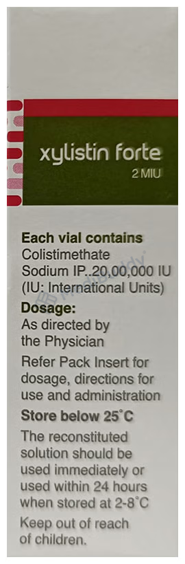 Xylistin Forte 2MIU Injection is a potent antibiotic utilized in the treatment of severe bacterial infections within the body. Typically recommended for critically ill patients requiring hospitalization, Xylistin Forte 2MIU Injection should only be administered under the supervision of a healthcare professional. It is crucial not to self-administer this medication at home, as the dosage and duration of treatment are determined by your doctor based on the specific type and severity of the infection.