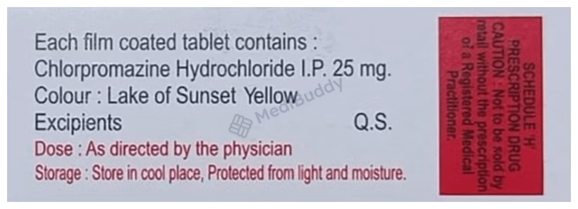 In case of common side effects like sleepiness, blood pressure changes, dry mouth, abnormal movements, weight gain, urinary issues, constipation, muscle stiffness, or tremors, it is advised to consult a healthcare provider. It is crucial not to take Yemetil 25 Tablet 10's if allergic to Chlorpromazine or any of its components. Before starting this medication, discuss with the doctor regarding any family history of blood clots, stroke, heart disease, dementia if above 65 years, or if pregnant or breastfeeding. Yemetil 25 Tablet 10's should not be discontinued without medical advice to prevent withdrawal symptoms.