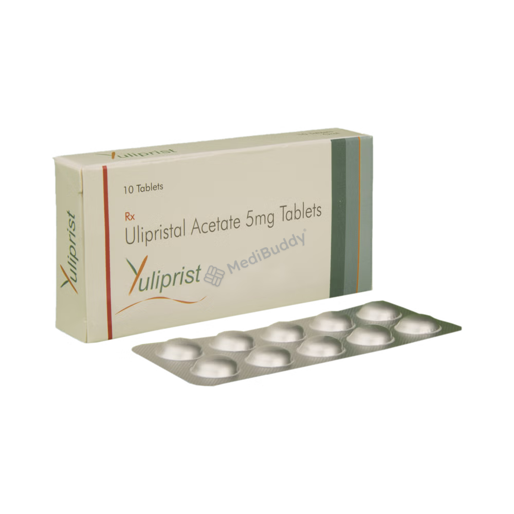 Yuliprist Tablet is a medication specifically designed to address uterine fibroids, which are non-cancerous growths occurring in the uterus of premenopausal women who are not suitable candidates for surgical procedures or have not shown improvement following surgical intervention. This tablet is utilized to alleviate symptoms associated with uterine fibroids, such as abnormal vaginal bleeding, prolonged menstrual periods, and lower back pain.